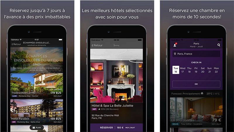 Hotel Tonight cible les voyageurs de dernière minute ou ceux qui souhaitent étendre leur séjour : cette application vous permet de trouver des deals de dernière minute dans de nombreuses destinations en Amérique du Nord, Amérique Latine ou Europe.